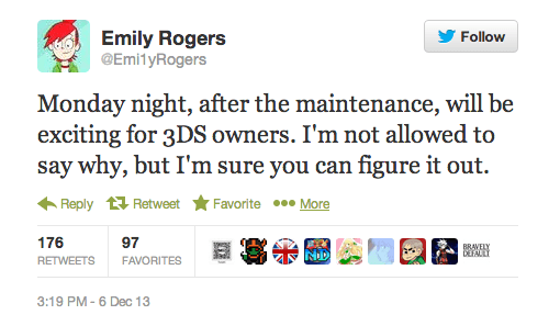 Still, this tweet from the writer seems to point to something of a surprise might be in store for 3DS owners. What could it be? Possibly unified accounts may still be play, but many will soon find out once or if the update is implemented this week.