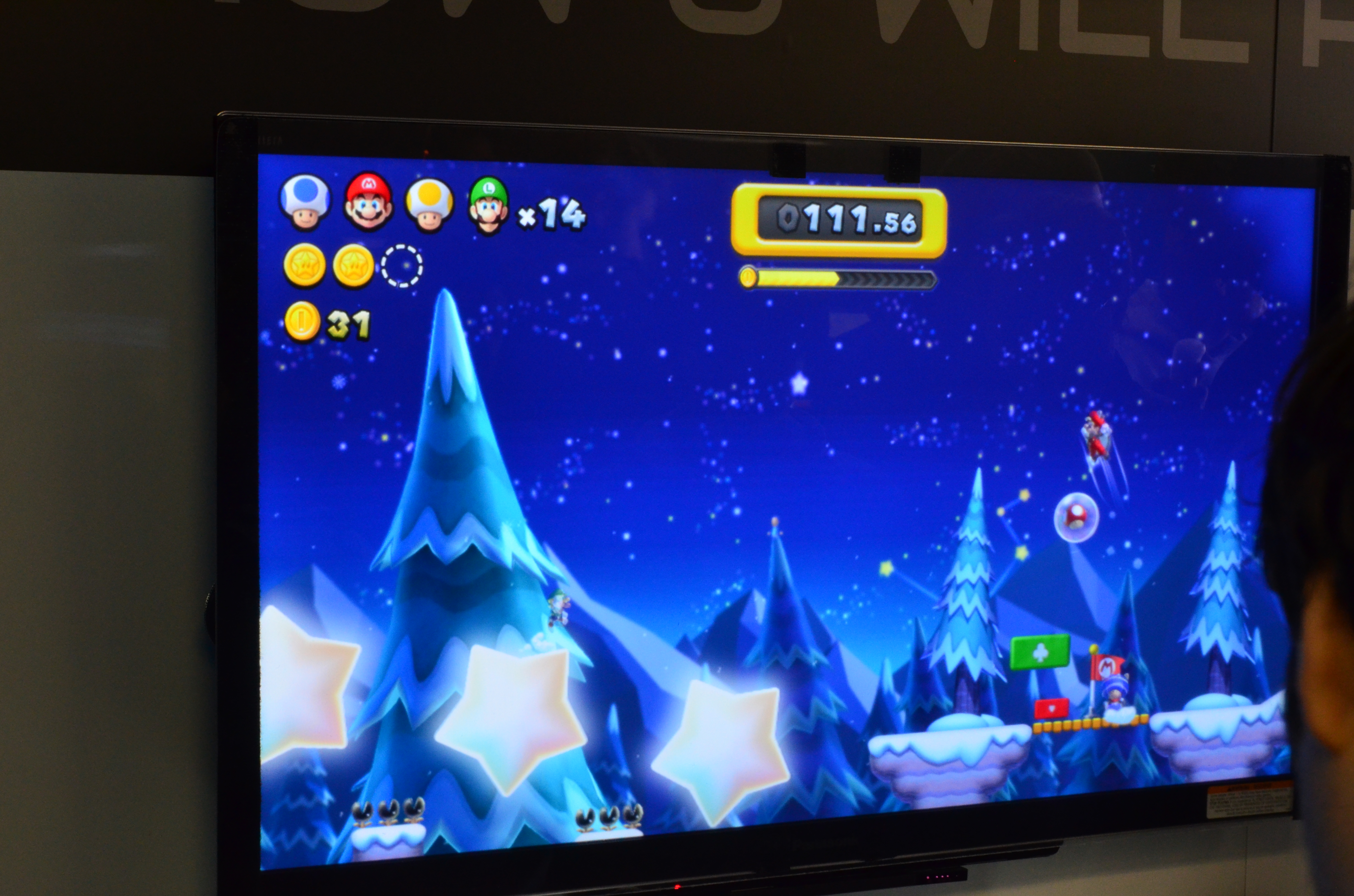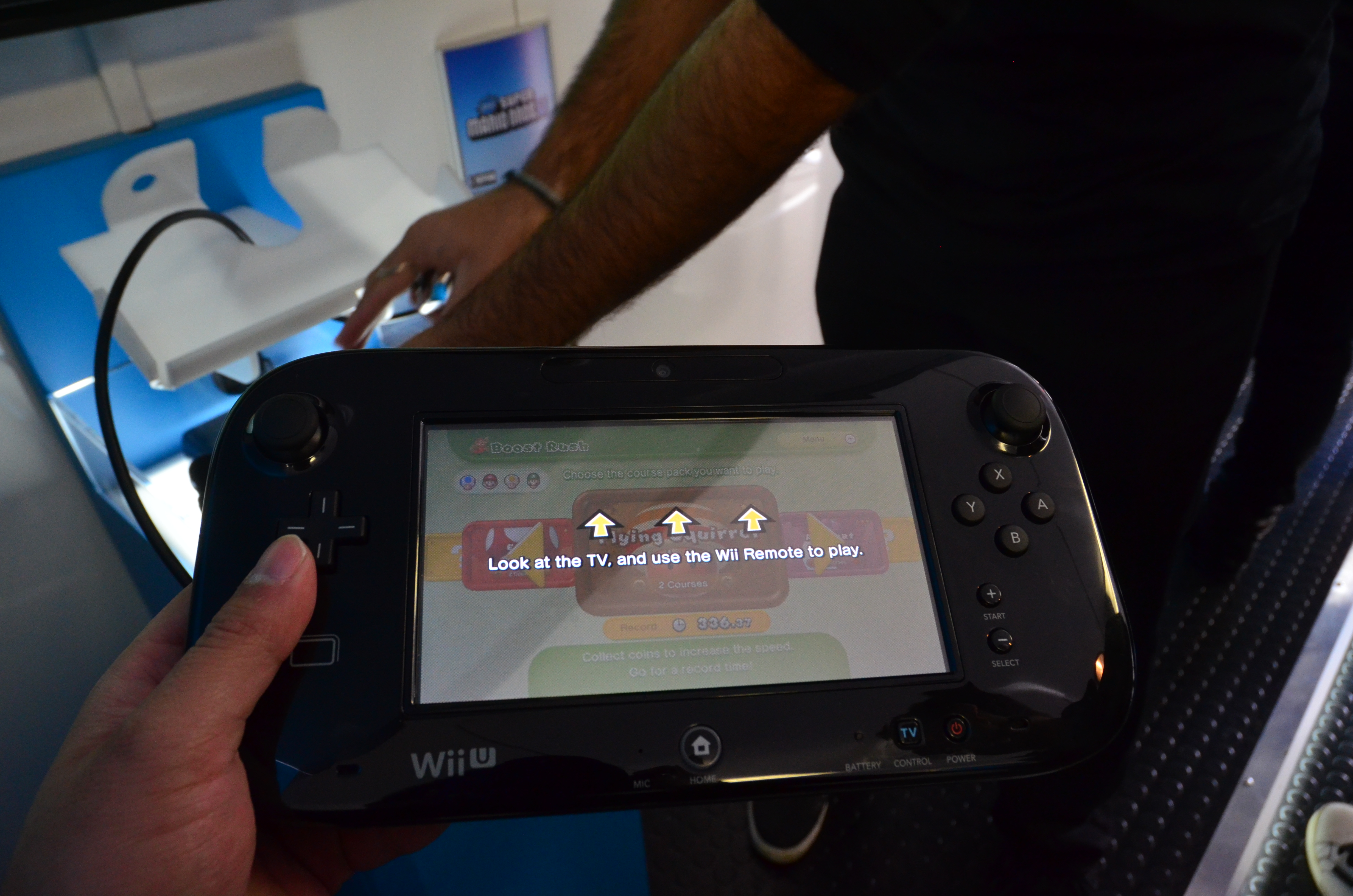 The next thing I got my hands on while in the trailer was New Super Mario Bros U. I was a bit cynical with this title before the demo due to the overabundance of Mario titles in the past year, but it more than delivers in pure unadulterated fun. It builds on the New Super Mario Bros 2 concept of Coin Rush and the idea of teamwork (or the lack thereof) in New Super Mario Bros Wii. The GamePad is used as the fifth player as most of you know, which can either help or hinder players. Another note is that players share communal lives, so if you do decide to throw someone in a lava pit, be prepared to run to the end of the level on that one life!