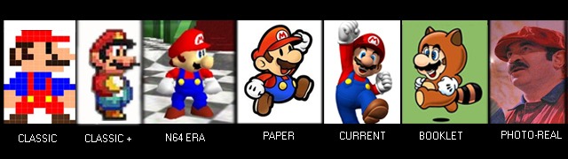 CURRENT: From Sunshine to Super Mario 3D Land, this rendition gets tweaked and upscaled/downscaled depending on the hardware and game needs, but they’re all aiming at this look that’s become Nintendo’s “standard” Mario.