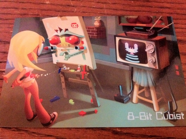 While touring the floor, I visited the 8-Bit Cubist booth and picked up a few postcards. These guys and gals can seriously draw, and the images presented here are but two examples of what they have to offer the gaming community.