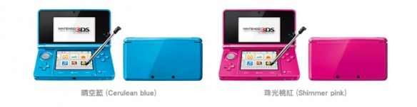 Nintendo Taiwan and Nintendo Hong Kong have revealed two new colors to the 3DS family (no new 3DS XL colors announced). Cerulean Blue and Shimmer Pink will be released on September 28th, 2012. Although there is no announcement that North America will receive these new additions, we do have many colors to choose from.