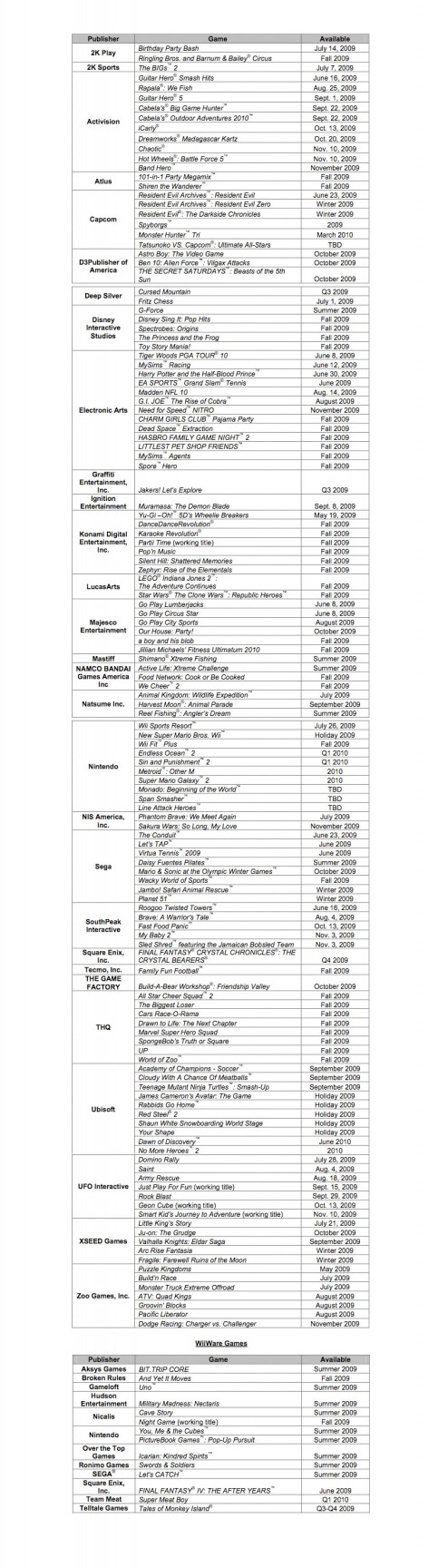 You want a Wii release calendar? I got your exhaustive Wii release calendar right here!