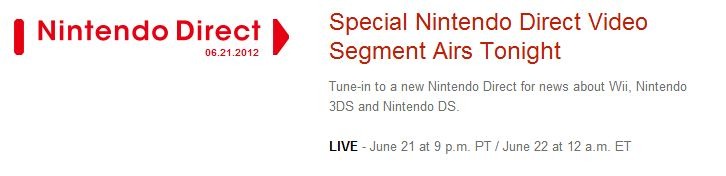 Be sure to tune in to tonight’s Midnight EST (9PM Pacific) Nintendo Direct Live Event! The broadcast can be viewed by visiting the Nintendo Direct homepage. Satoru Iwata will be presenting news about the WII, DS, and 3DS. Sorry, there is not expected to be any Wii U coverage.