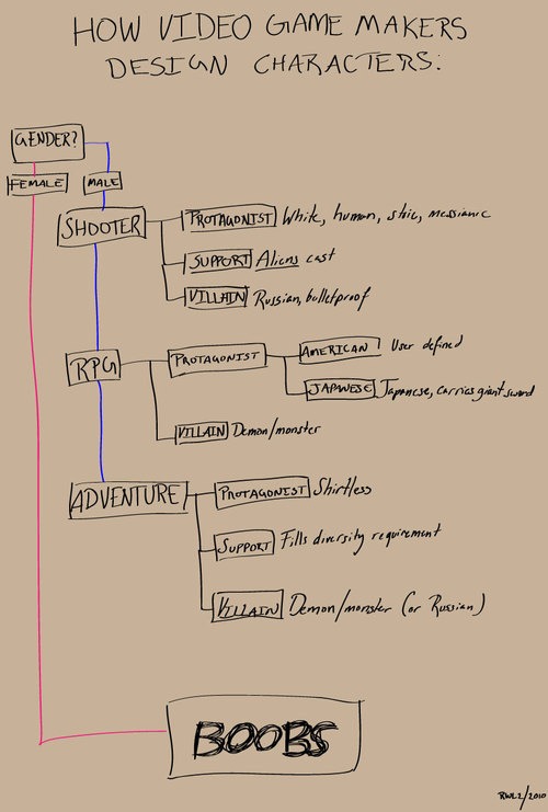 Much has already been said about the insultingly crass objectification of women in video games. It seems we are meant to believe that iconic female characters such as Lara Croft, the female cast members of the Dead or Alive and Soul Calibur fighting series, and Final Fantasy heroines such as Tifa Lockhart are great because they’re “empowering”, butt-kicking heroes. But upon closer inspection, all of the most prominent female video game stars definitely have something in common. And it’s not the advanced martial arts maneuvering that makes their laughably impractical outfits look even more ridiculous as they bounce their way across the battlefield. Furthermore, the trend only worsens as time goes on — characters such as Chun Li who started out relatively conservative in appearance seemed to, ah… “blossom” to self-caricaturing levels of overexposure as time went on.